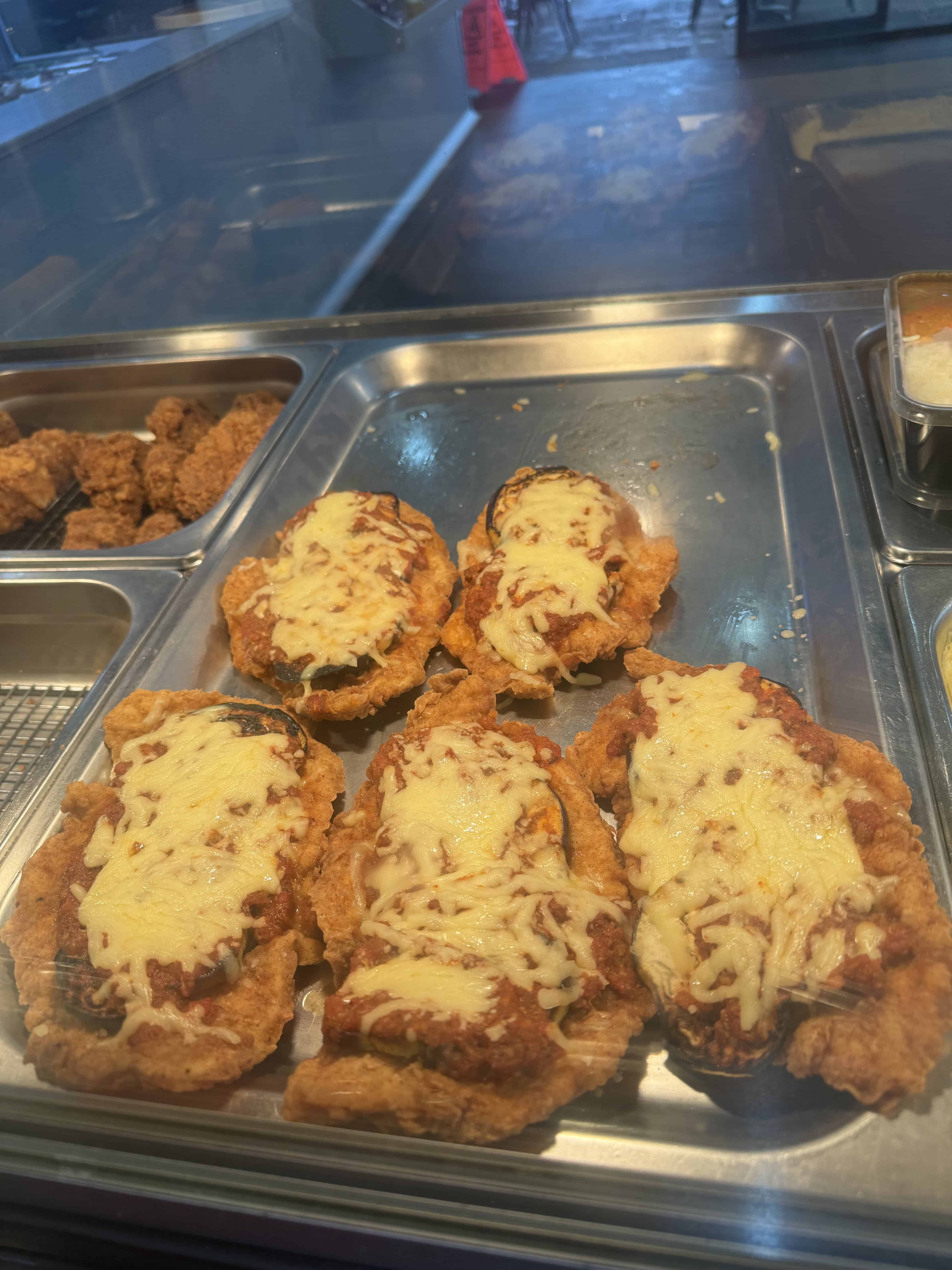 zesto's signature schnitzel, lettuce, tomato, mayo