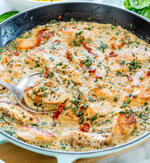 schnitzel, baby spinach, sundried tomato, sour cream, sweet chilli sauce & parmesan cheese