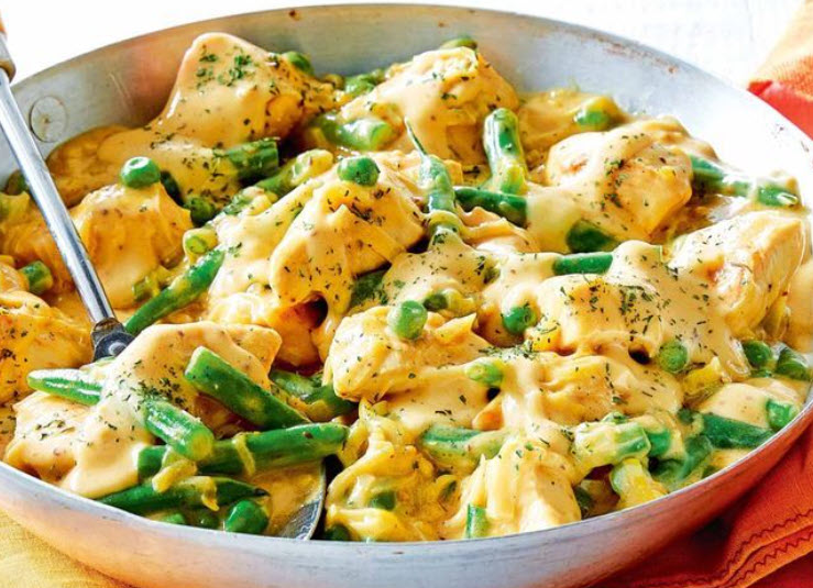 fresh vegetables & pasta in a creamy sweet mayonnaise