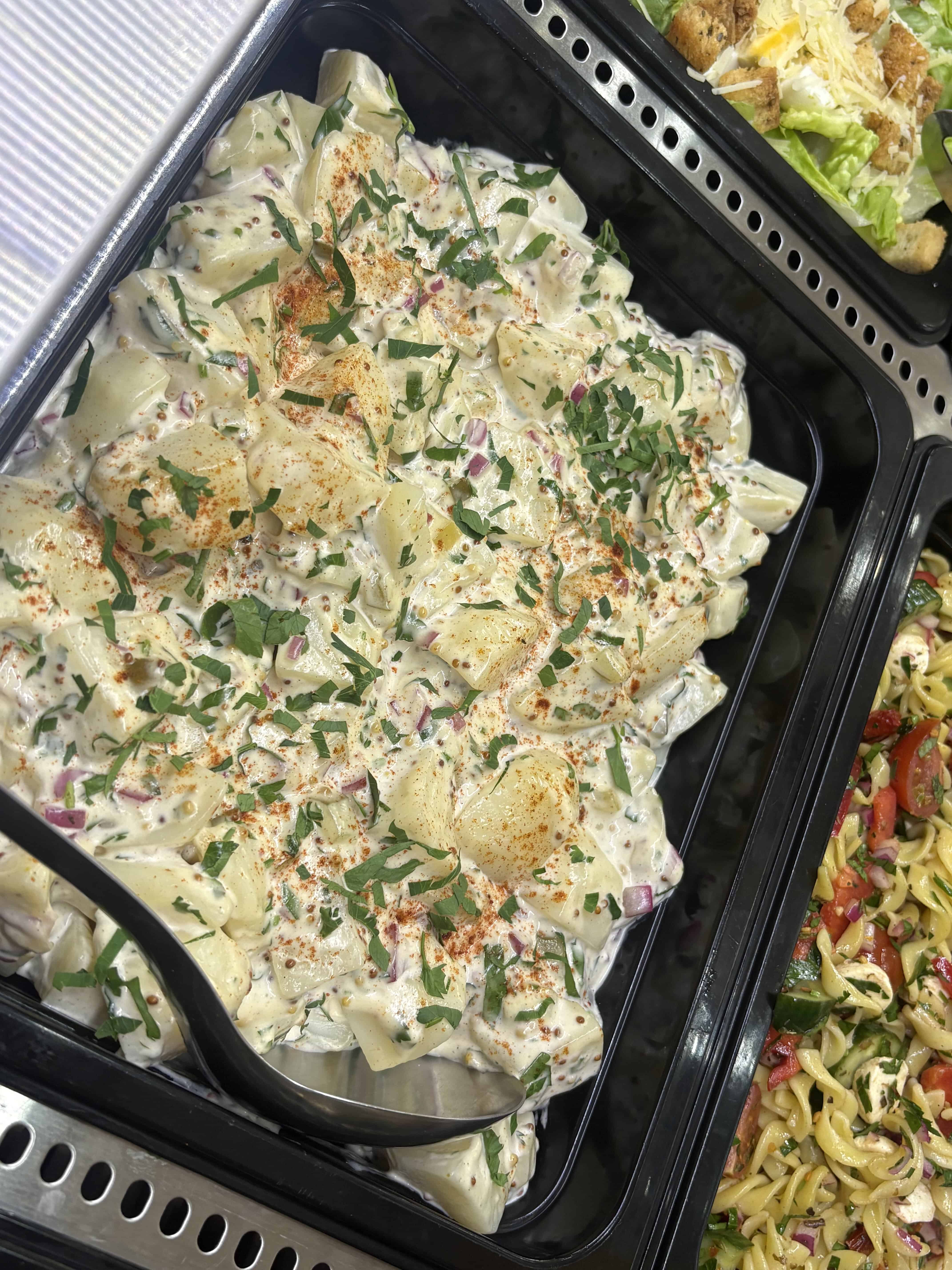Creamy mayonnaise coats tender diced potatoes, complemented by the crunch of fresh celery for a perfect balance of flavors and textures.